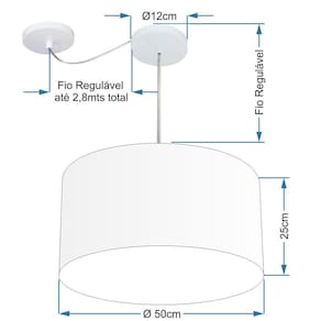 Lustre Pendente Cilíndrico Com Desvio Md-4230 Cúpula Tecido 50x25cm Linho Bege