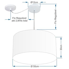 Lustre Pendente Cilíndrico Com Desvio Md-4231 Cúpula Tecido 50x30cm Algodão Crú