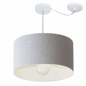 Lustre Pendente Cilíndrico Com Desvio Md-4231 Cúpula Tecido 50x30cm Rustico Cinza