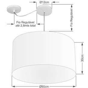 Pendente Com Desvio de Centro Indicado para decoração área interna, como mesas, sala de estar, sala de jantar, suite, quartos, corredor, hall, mezanino, escadas, churrasqueira, lareira, área de circulação, lojas, comércios, restaurante, varanda, balcão.DimensãoCúpula em Tecido: 60x30cm