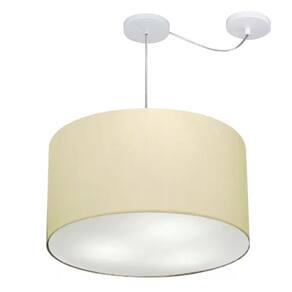Lustre Pendente Cilíndrico Com Desvio Md-4235 Cúpula Tecido 45x30cm Algodão Crú