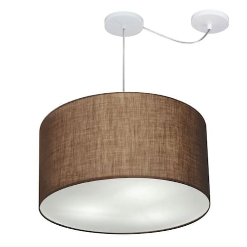 Lustre Pendente Cilíndrico Com Desvio Md-4239 Cúpula Tecido 45x30cm Café