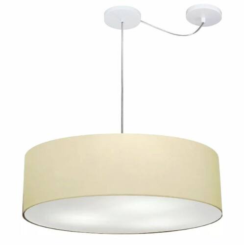 Lustre Pendente Cilíndrico Com Desvio Md-4265 Cúpula Tecido 60x15cm Algodão Crú