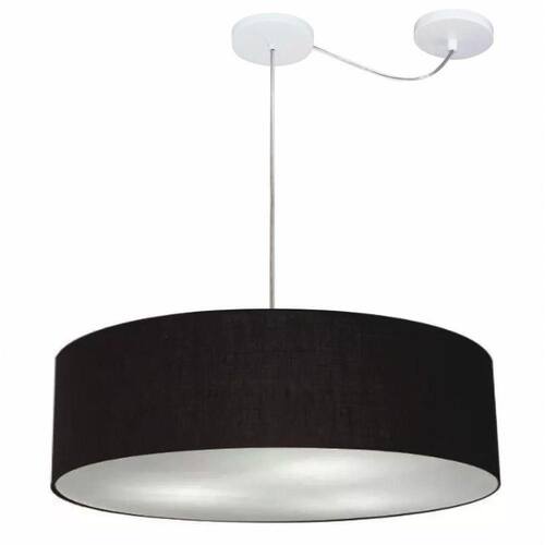 Lustre Pendente Cilíndrico Com Desvio Md-4265 Cúpula Em Tecido 60x15cm Preto - Bivolt