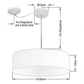 Pendente Com Desvio de Centro Indicado para decoração área interna, como mesas, sala de estar, sala de jantar, suite, quartos, corredor, hall, mezanino, escadas, churrasqueira, lareira, área de circulação, lojas, comércios, restaurante, varanda, balcão.DimensãoCúpula em Tecido: 60x15cm