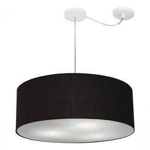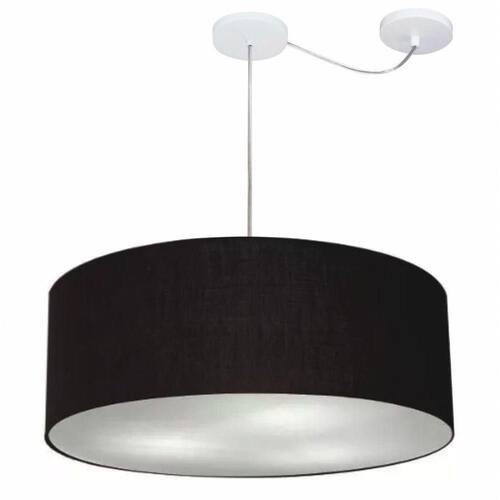 Lustre Pendente Cilíndrico Com Desvio Md-4266 Cúpula Em Tecido 60x21cm Preto - Bivolt