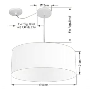 Pendente Com Desvio de Centro Indicado para decoração área interna, como mesas, sala de estar, sala de jantar, suite, quartos, corredor, hall, mezanino, escadas, churrasqueira, lareira, área de circulação, lojas, comércios, restaurante, varanda, balcão.DimensãoCúpula em Tecido: 60x21cm