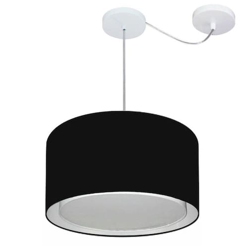 Lustre Pendente Cilíndrico Com Desvio Md-4305 Cúpula Tecido 40x25cm Preto