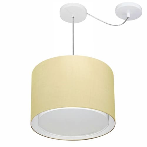 Lustre Pendente Cilíndrico Com Desvio Md-4312 Cúpula Tecido 40x30cm Algodão Crú