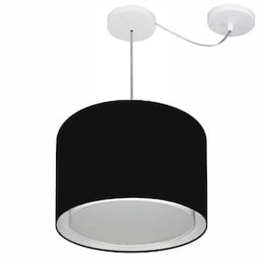 Lustre Pendente Cilíndrico Com Desvio Md-4312 Cúpula Tecido 40x30cm Preto