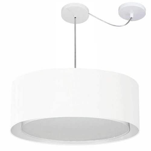 Lustre Pendente Cilíndrico Com Desvio Md-4317 Cúpula Tecido 60x25cm Branco