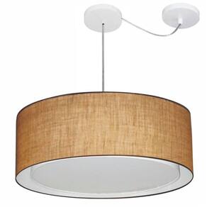 Lustre Pendente Cilíndrico Com Desvio Md-4317 Cúpula Tecido 60x25cm Palha
