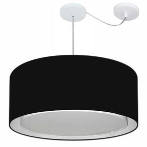 Lustre Pendente Cilíndrico Com Desvio Md-4318 Cúpula Tecido 60x30cm Preto