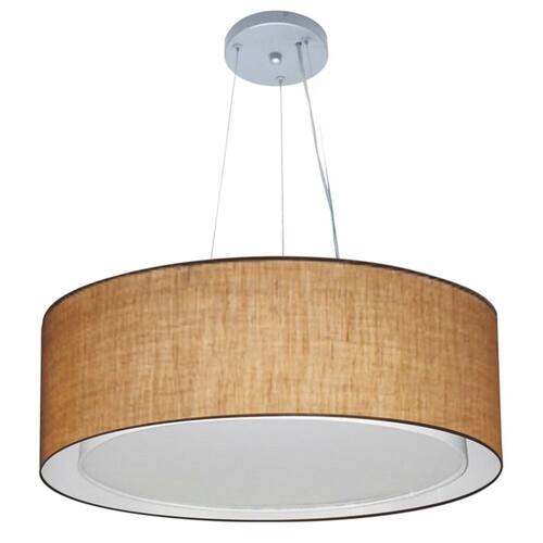 Lustre Pendente Cilíndrico Duplo Md-4125 Cúpula Tecido 60x25cm Palha