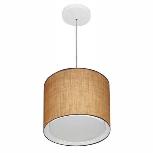 Lustre Pendente Cilíndrico Duplo Md-4284 Cúpula Tecido 30x30cm Palha