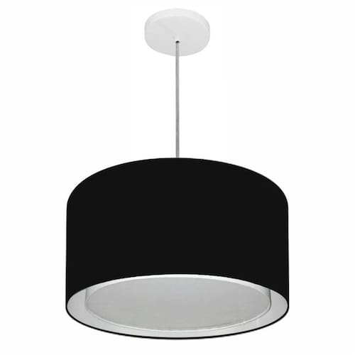 Lustre Pendente Cilíndrico Duplo Md-4290 Cúpula Tecido 40x25cm Preto