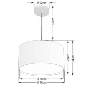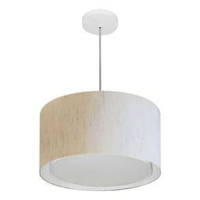 Lustre Pendente Cilíndrico Duplo Md-4290 com Cúpula em Tecido Linho 40x25CM e Cabo Ajustável Bege Vivare Brasil