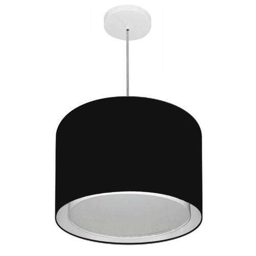 Lustre Pendente Cilíndrico Duplo Md-4292 Cúpula Tecido 40x30cm Preto