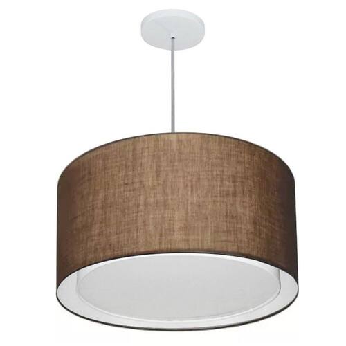 Lustre Pendente Cilíndrico Duplo Md-4293 Cúpula Tecido 45x30cm Café