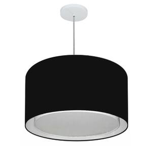 Lustre Pendente Cilíndrico Duplo Md-4293 Cúpula Tecido 45x30cm Preto