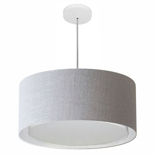 Lustre Pendente Cilíndrico Duplo Md-4294 Cúpula Tecido 50x25cm Rustico Cinza