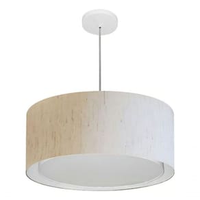 Lustre Pendente Cilíndrico Duplo Md-4294 com Cúpula em Tecido Linho 50X25CM Bivolt Bege Vivare Brasil Iluminação