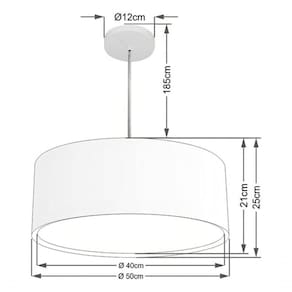 Fio ajustável 185cm facilita a regulagem da altura do pendente.
