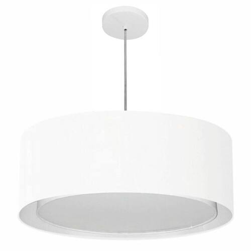 Lustre Pendente Cilíndrico Duplo Md-4297 Cúpula Tecido 60x25cm Branco