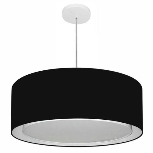 Lustre Pendente Cilíndrico Duplo Md-4297 Cúpula Tecido 60x25cm Preto