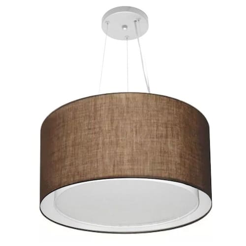 Lustre Pendente Cilíndrico Duplo Md-4299 Cúpula Tecido 45x30cm Café