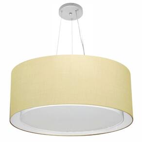 Lustre Pendente Cilíndrico Duplo Md-4302 Cúpula Tecido 60x30cm Algodão Crú