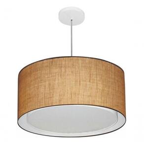 Lustre Pendente Cilíndrico Duplo Vivare Md-4295 Cúpula Em Tecido 50x30cm - Bivolt Palha 127/220v