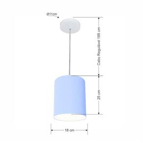 Lustre Pendente Cilíndrico Md-4012 Cúpula Tecido 18x25cm Azul Bebê