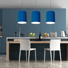 Lustre Pendente Cilíndrico Md-4012 Cúpula Tecido 18x25cm Azul Marinho