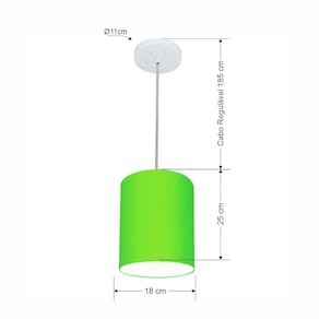 Lustre Pendente Cilíndrico Md-4012 Cúpula Tecido 18x25cm Verde Limão