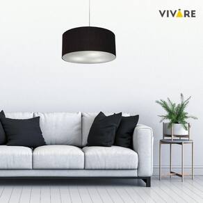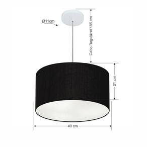 Lustre Pendente Cilíndrico Md-4019 Cúpula Tecido 40x21cm Preto