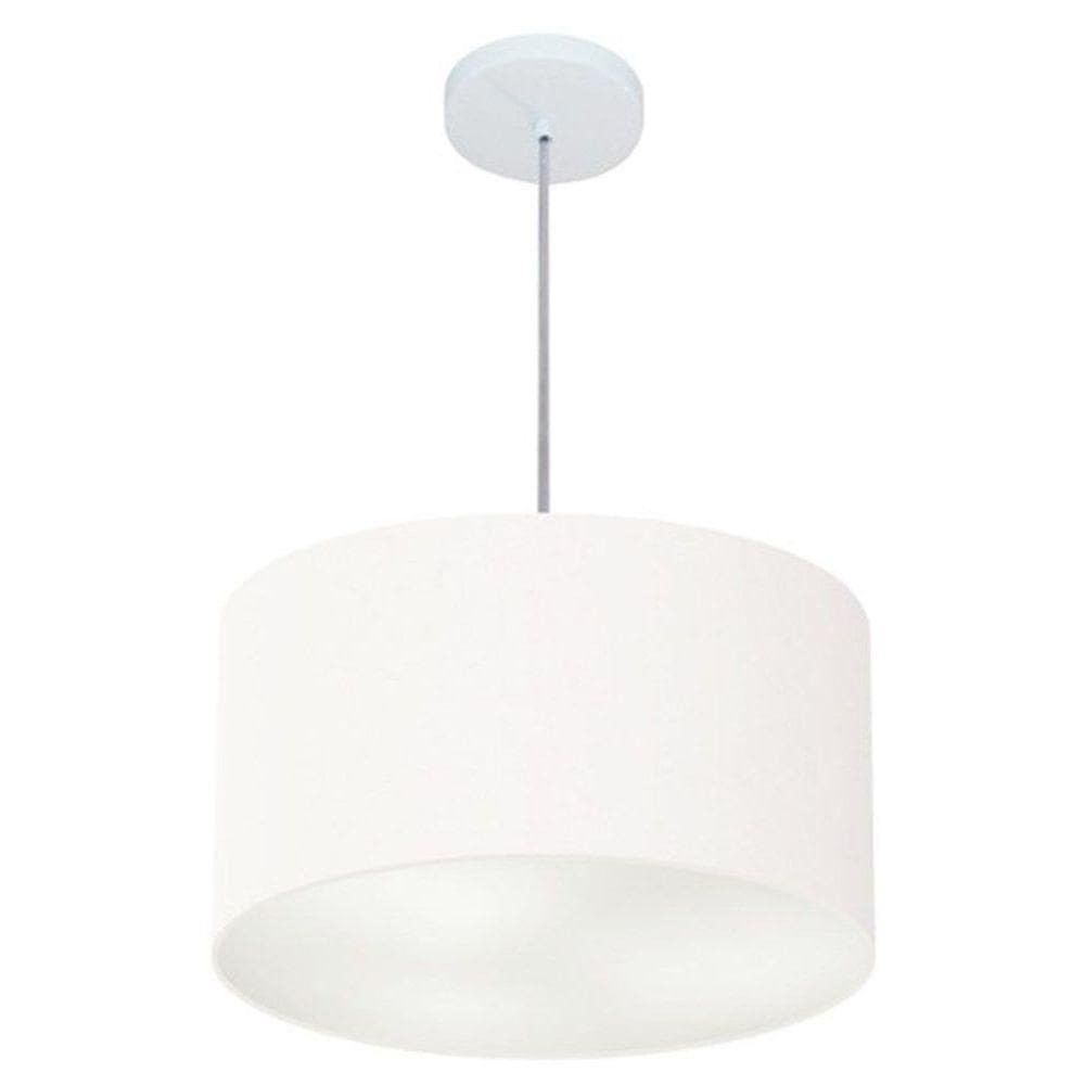 lustre pendente cilindrico md 4019 cupula tecido 40x21cm branca vivare iluminacao