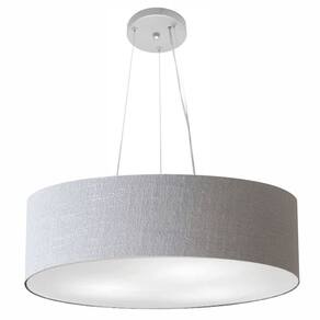 Lustre Pendente Cilíndrico Md-4029 Cúpula Tecido 60x15cm Rustico Cinza
