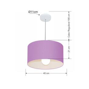 Lustre Pendente Cilíndrico Md-4031 Cúpula Tecido 40x21cm Lilás