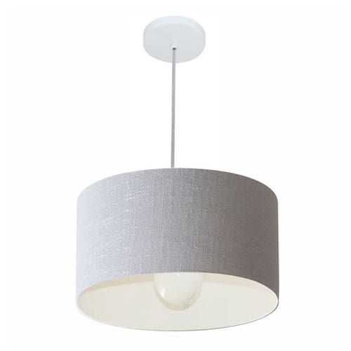 Lustre Pendente Cilíndrico Md-4031 Cúpula Tecido 40x21cm Rustico Cinza
