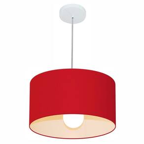 Lustre Pendente Cilíndrico Md-4031 Cúpula Tecido 40x21cm Vermelho