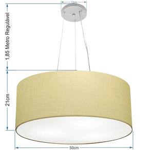 Pendente Moderno Indicado para decoração área interna, como mesas, sala de estar, sala de jantar, suíte, quartos, corredor, hall, mezanino, escadas, churrasqueira, lareira, área de circulação, lojas, comércios, restaurante, varanda, balcão.DimensãoCúpula em Tecido: 50x21cm