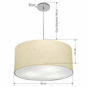 Lustre Pendente Cilíndrico Md-4049 Cúpula Tecido 50x21cm Algodão Crú