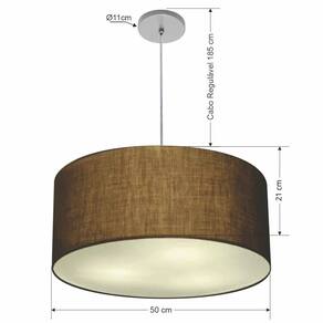 Lustre Pendente Cilíndrico Md-4049 Cúpula Tecido 50x21cm Café