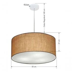 Pendente Moderno Indicado para decoração área interna, como mesas, sala de estar, sala de jantar, suíte, quartos, corredor, hall, mezanino, escadas, churrasqueira, lareira, área de circulação, lojas, comércios, restaurante, varanda, balcão.DimensãoCúpula em Tecido: 50x21cm