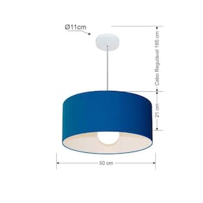 Pendente Moderno Indicado para decoração área interna, como mesas, sala de estar, sala de jantar, suíte, quartos, corredor, hall, mezanino, escadas, churrasqueira, lareira, área de circulação, lojas, comércios, restaurante, varanda, balcão.DimensãoCúpula em Tecido: 50x21cm