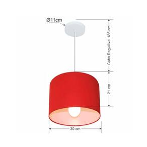Lustre Pendente Cilíndrico Md-4054 Cúpula Tecido 30x21cm Vermelho
