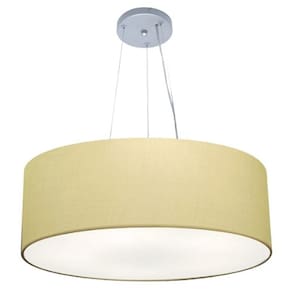Lustre Pendente Cilíndrico Md-4070 Cúpula Tecido 80x30cm Algodão Crú
