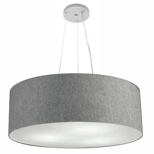 Lustre Pendente Cilíndrico Md-4070 Cúpula Tecido 80x30cm Rustico Cinza