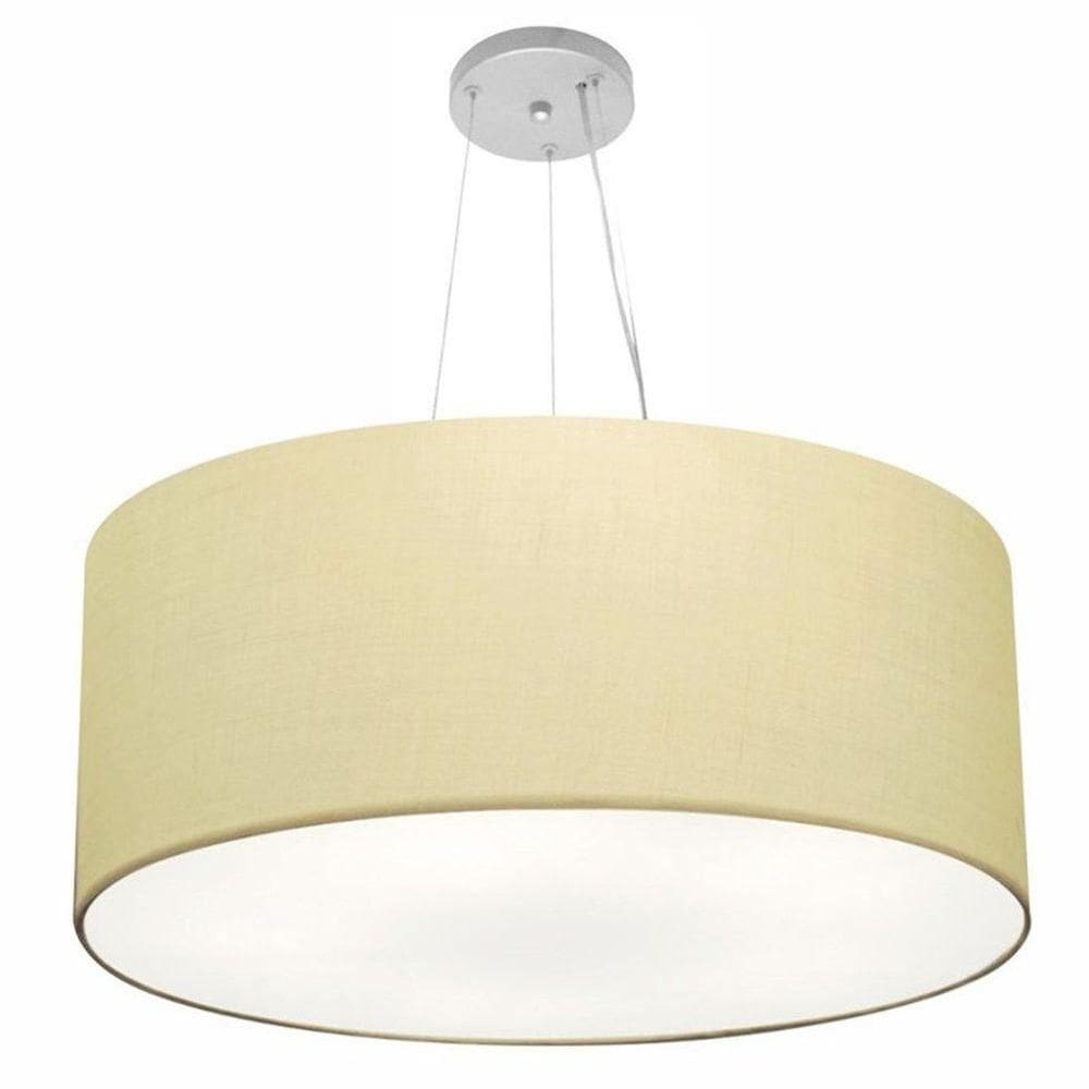 lustre pendente cilindrico md 4070 cupula tecido 80x30cm algodao cru vivare iluminacao
